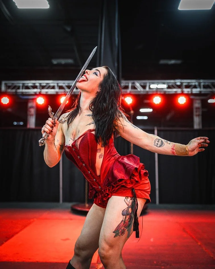 Alaska, the pretty boy of pain, rascal and charming scoundrel, hails from the great wild north. They are here to share their love of all things sharp and shiny. A core member of The Coney Island Circus Sideshow and Hot Fix Sideshow, with multiple award winning acts which have been performed internationally with various circus troupes- they aim to terrify, thrill and thrill. Their mesmerizing and daring acts blend storytelling, classic sideshow, burlesque, and aerial.
